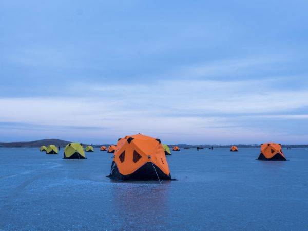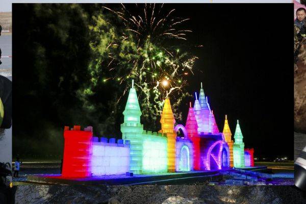 沐阳垂钓,在冰面上划定区域,设置五颜六色的保暖冬钓帐篷,游客可以租用帐篷进行冬钓。景区提供专用卡式炉等设备和服务,供游客现场烹食;