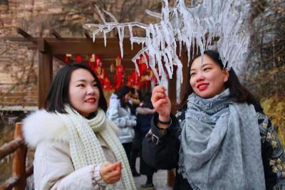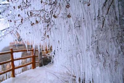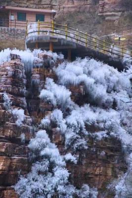 雪成了一种东太行冬季的象征,春节的氛围,民众的期盼,好像没有了雪就不能称之为完美的冬天。东太行晶莹的霜花、冰凝附着在枝叶、枯草上,远望银装素裹,洁白一片,如同千树万树梨花开。大地披银装,冰树着银花。东太行景区刚刚褪去了大雪覆盖的银装,如今又迎来了洁白无瑕、晶莹剔透的银花,如冰川奇景,似钟乳奇石,美极了!