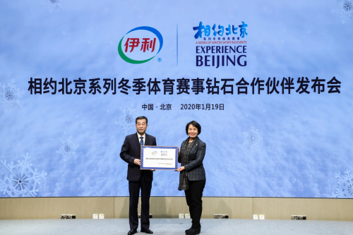 2020年1月19日,“相约北京系列冬季体育赛事钻石合作伙伴发布会”在北京冬奥组委园区举行。北京冬奥组委专职副主席兼秘书长、“相约北京”组委会副主席兼秘书长韩子荣,伊利集团执行总裁张剑秋,以及来自各行各业的企业代表、媒体嘉宾等共同出席。