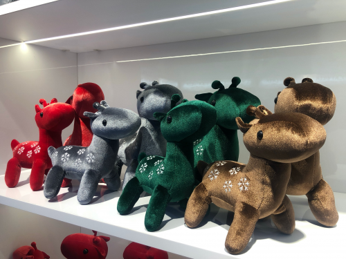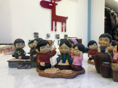 在雪乡文创用品店的靓丽一角,我们看到了“萌”态可掬的“福鹿”系列文创产品。据了解,雪乡“福鹿”,取谐音“福、禄”,寓意富贵吉祥,健康长寿,是由国内知名的视觉艺术家、设计师刘恒甫先生为雪乡景区设计的吉祥物,也是现在雪乡景区最具影响力的网红IP。