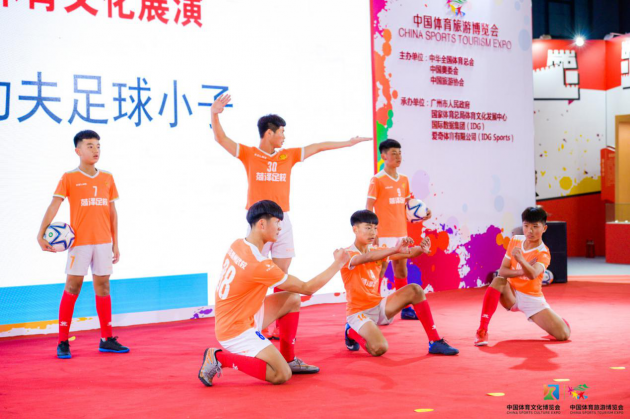 电影《功夫足球》的情节,更是被另一场表演直接搬来了现实。无需特效剪辑,来自曹州武术学校的孩子们把武术与足球结合,将武术中的柔韧、灵活、腾跃、坚韧最大化地运用于足球当中,尽显“功夫足球”的精神气度和十足魅力。