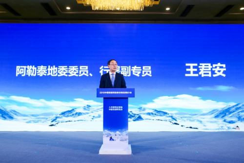 阿勒泰地委委员、行署副专员王君安在致辞中说:“阿勒泰地处新疆北部,处在世界滑雪“黄金纬度”47度,作为“人类滑雪起源地”享誉世界冰雪运动界,2018年,阿勒泰被国家气候中心授予“中国雪都”的国家气候标志,冰雪文化历史悠久,底蕴深厚。雪资源有三大特点:雪质优,雪量大、雪期长。此次来到广州推介,以冰雪体验、旅游观光等为主要内容,进一步加强与广州的跨区域合作,实现双方互利多赢,旅游产业协同发展。”