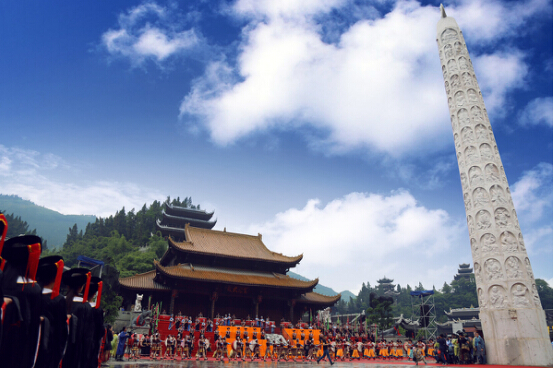 去摩围山感受了冰雪世界,耍够了雪,不如放慢脚步去蚩尤九黎城走一走。蚩尤九黎城被群山怀抱,自然风光同样优美,但它引以为傲的是它的建筑和文化。