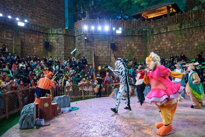 在热带雨林区的飞鸟乐园,拥有来自世界各大洲的400多只珍稀鸟类,30多种萌宠动物期待着与游客们近距离亲密互动,热带雨林的奇趣昆虫和萌宠动物齐聚一堂,百鸟齐鸣,海洋动物明星和雨林动物明星比肩表演精彩纷呈;亲子总动员,玩转8大动感娱乐项目,以及“飞越云南”的代入式刺激体验,通过多种互动方式和场景,带来丰富感官体验。