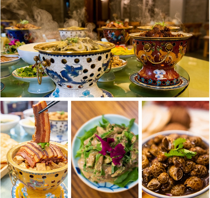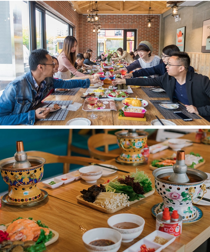以餐饮起家的项林宿,光餐厅就能容纳百人,由满族美食演变而来的“二八席”,精致的八碟八锅一上桌,道道讲究! 要是怕冷,养生火锅也是个很好的选择,吃起来温暖,气氛又热烈!