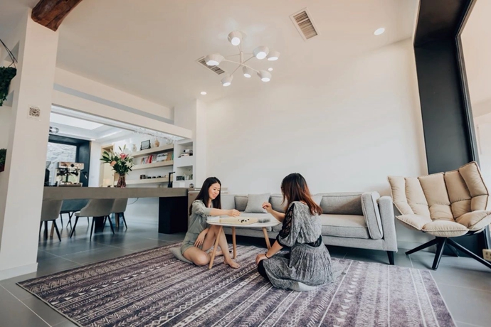 烧烤,棋牌,唱K,轰趴…山色以另一种打开方式在诉说着欢乐!每个小楼的一层客厅,都很宽敞能做玩耍的活动区域,桌上足球、棋牌、麻将、投影各种娱乐活动一应俱全。
