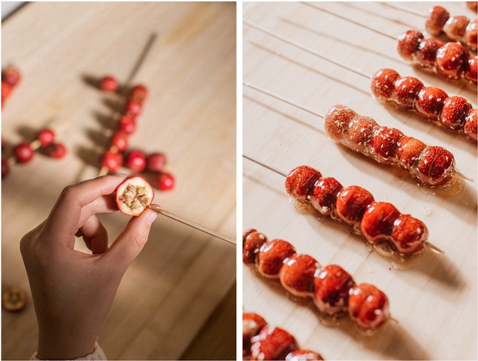 山楂,除了做山楂汁,还有一个更甜蜜爽脆的吃法——做冰糖葫芦!山楂小院旁的亲子手工坊里,冰糖葫芦、松果DIY也在热闹进行中,阳光正好,欢乐也刚刚好。