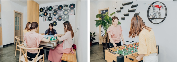 长城脚下、古北水镇旁,1院9室的“丫头的客厅”最适合20人左右的小部门团建。台球桌、麻将机、吉他、狼人杀、棋牌等桌游、厨具、烘焙、咖啡机…休闲设施、厨房设备都齐全,也算得上现实版向往的生活了! 且屋内多媒体设备、白板、茶水台也一应俱全,是个十分舒服的开会环境~