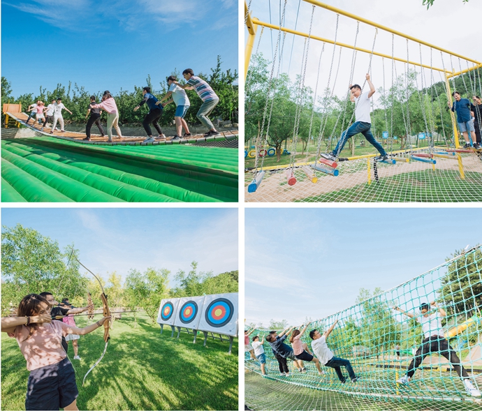 从“先生的院子”开车5分钟即达的“青山依旧”是一座建在百亩游乐园上的独栋小楼,因具备许多网红团建拓展游戏,备受青睐!抖音网红独木桥、步步高升、射箭、推独轮车、坦克…考验团队合作默契的时刻到了,十几种拓展项目,怕是玩一整天时间都不够。