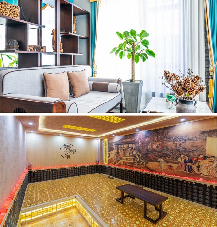 多个会客空间,欢迎着爱茶喜静小伙伴们的到来;若是天冷,特色汗蒸室绝对是一处最受欢迎的存在,晶石围绕中放下手机,和伙伴们聊聊天、排排寒!