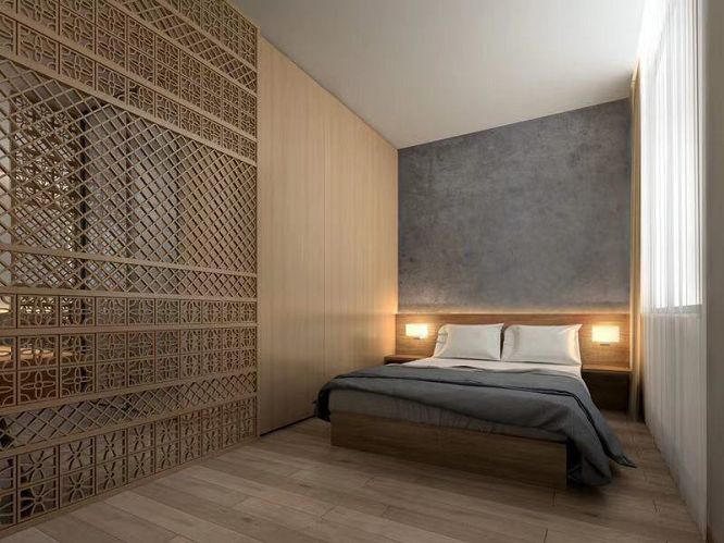 GINZA II 外观融合了筑地旧街中随处可见的木格子和障子元素,玻璃的加入又让整体观感变得柔和,既复古又现代。在建筑的中心,设计师特意设置了透光的中庭,光和绿色使得整个建筑生机勃勃。同时,房间走廊也不同于传统酒店依靠灯光照明,而是采取了自然光的引入。木格与玻璃的墙面采光性极好,在白天,走在酒店走廊仿佛走在筑地开放空间,独具风情。江户时代遗留下来的建筑风格在现代重现,是一种酒店本土化尝试,也体现了酒店促进社区建设、文化融合的一份心。