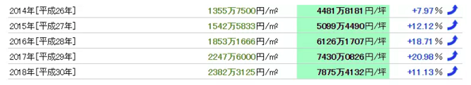 东京银座町平均地价 來源:https://tochidai.info/area/ginza/